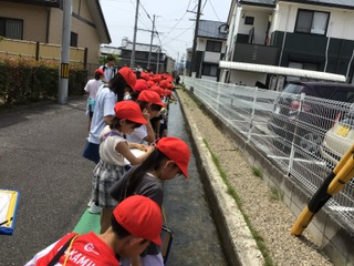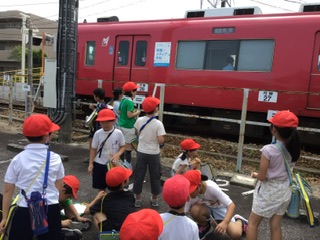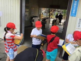 3年生みんなで、うわごろも方面に学区探検へでかけました。白地図を確認しながら歩き、朝日丘交流館や水路など、見つけたものを書き込んでいきました。学区でも、自分の住んでいるところから離れている場所では、新しい発見がたくさんあったようです。名鉄上挙母駅では、ちょうど電車が停まって大興奮でした。