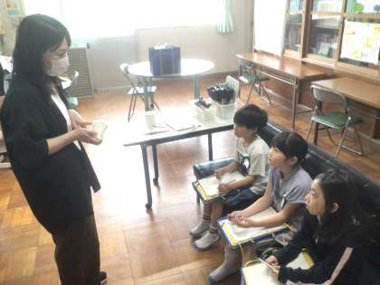 2年生国語科「はたらく人に話を聞こう」の学習で、学校で働く先生にインタビューをしました。大事なことを落とさずに聞くだけでなく、言葉づかいにも気をつけてインタビューをすることができました。「先生も座ってください」と相手を気遣う言葉も聞かれ、子どもたちの成長を感じました。