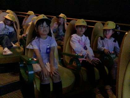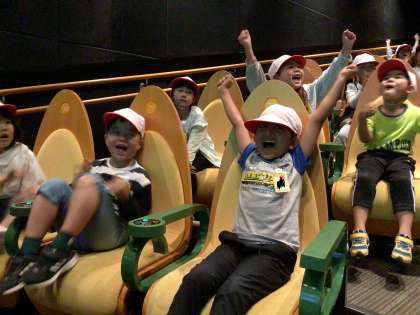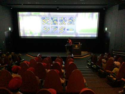 交通安全学習センターに到着するとすぐにシアター学習を行いました。交通安全クイズを通して、交通安全の基礎知識を学びました。早押し形式のクイズで盛り上がっていましたが、話を聞くときにはしっかりと聞くことができました。