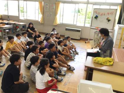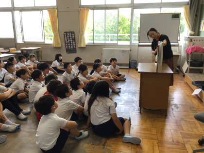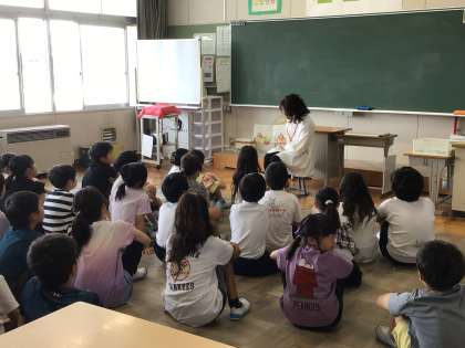 今日は「森の本ばこ」さんの読み聞かせの日です。子どもたちは、いつもこの日を楽しみにしています。時々笑い声や歓声も上がります。今日も身を乗り出して、目をきらきらさせながらお話を聞き入っていました。