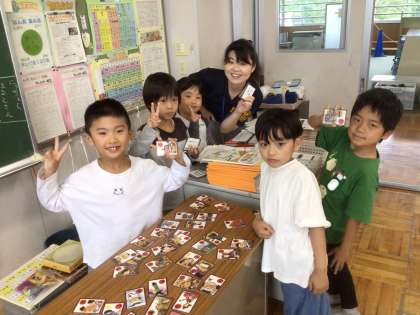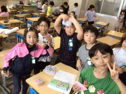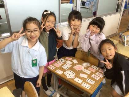 2年生の教室では、カルタやトランプなどのカードゲームが大人気。落ち着いて休み時間を過ごしました。