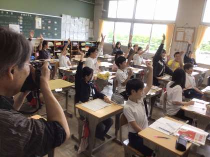 まだ6月ですが、6年生の卒業アルバムの準備が始まりました。カメラマンさんが授業風景を撮影していると、6年生はいつもより張り切って授業に取り組みました。いい笑顔です。