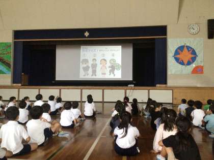 連れ去りなどの被害にあわないように、2・3年生対象に防犯教室を行いました。市役所の交通安全防犯課の方に来ていただき、大声を出す練習をしたり、防犯ブザーについてのお話を聞いたりしました。ぜひ、お家でも話題にしていただき、いつも通る道で危険なところはないか一緒に探したり、今日教えてもらったことを練習したりしてみてください。