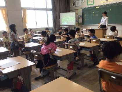 1組の算数では、自分で引き算の式を立てて計算することができました。途中で変わった花が登場し、教室は笑いに包まれました。2組は、生活科で育てているあさがおについて、大きくするどうすればいいのか考えました。自信をもって発表をしている姿が頼もしかったです。3組の国語では、伝え方・聞き方名人になるためのコツを考えました。代表の子が違う班の子から聞いた話を同じ班の子に伝える場面では、伝える子も聞く子も真剣にできました。