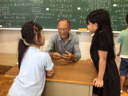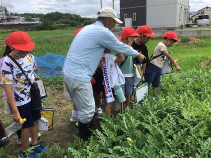 2年生の生活科「なつやさい!だいすき!!」の学習では、本校の農業指導員の方の畑を訪問し、夏野菜の育て方を学んだり、悩みを相談したりしました。