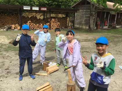 カレー作りが始まりました。火起こしにも挑戦します。美味しいカレーができますように。