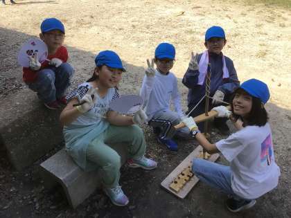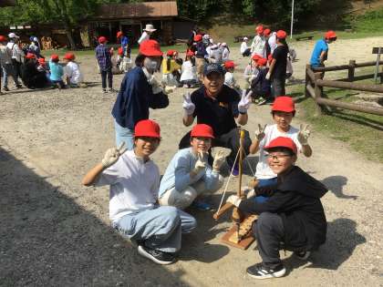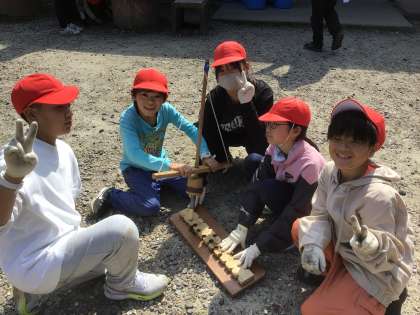 火起こしは、班全員の力が必要です。夕食のために、頑張りました。