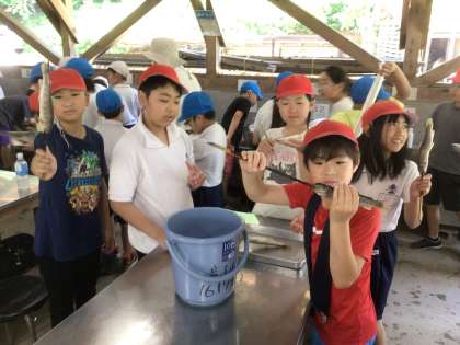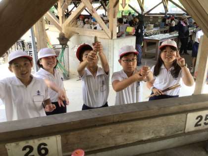 所員さんの説明聞いた後は、魚の串打ちしました。
