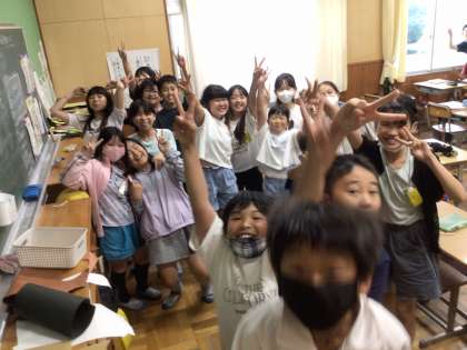休み時間は大騒ぎしていた子どもたちも、「写真撮るよ」の声を聞くと10秒で写真隊形になることができました。大きなてるてる坊主も作りました。心も体も持ち物も準備はバッチリなようです。天気予報も雨から晴れに変わっています。みんなで協力して、安全で楽しい野外学習にしてくださいね。