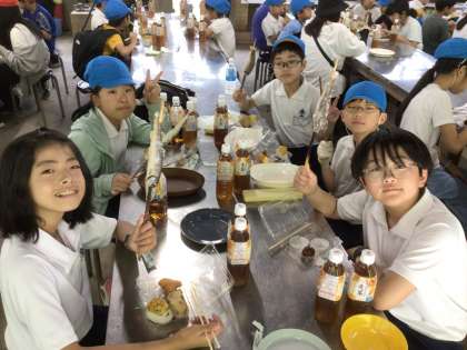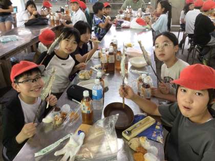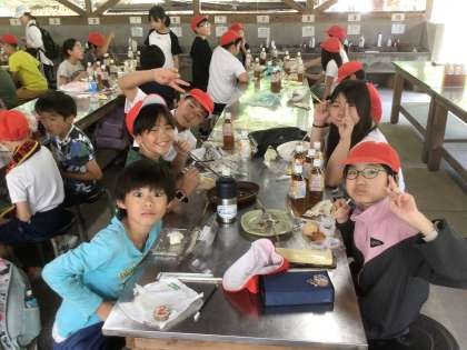 先生からは、「さっきまで川で泳いでいた魚をこうして食べるということは、命をいただくことになるんだよ。命の重みを感じてくださいね」というお話がありました。そのおかげか、子どもたちはいつもより最後まで丁寧に食べていました。