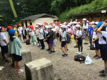 楽しかった野外学習もとうとう帰る時間になってしまいました。行く前よりもずっと成長を感じた2日間になりました。退所式では、所員さんと六所の山に向かって、学年スローガンを大声で叫び、決意を表していました。野外学習で学んだことを明日からの生活に生かしていってくださいね。