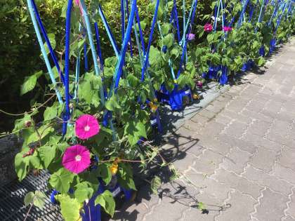 1年生が育てているアサガオが綺麗な花を咲かせています。