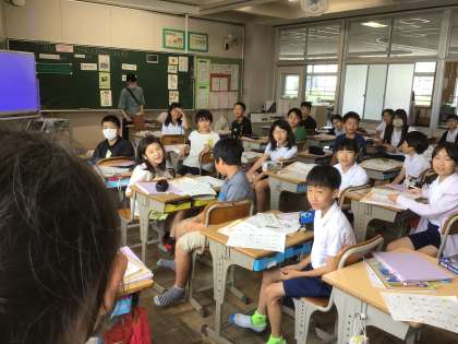 5年生が学校に戻ってきました。黒板には6年生からのメッセージがいっぱい書かれており、野外学習の思い出が蘇ってきました。また、野外学習で学んだことを生かそうとがんばる姿があちこちで見られました。外国語の授業では、発表者に体を向けて「Can you play piano?」などとしっかり話すことができました。また、ちょっとしたすきま時間にロッカーの整頓をしている子もいました。これからも、成長した姿をたくさん見せてくださいね。
