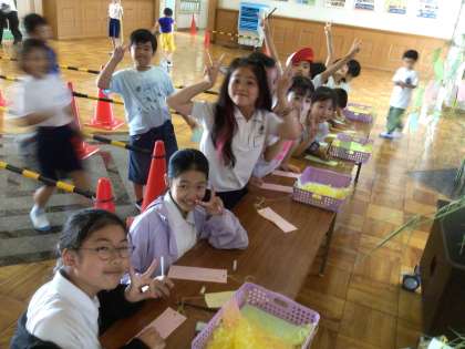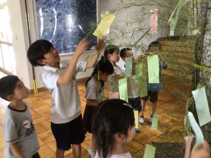 早速、子どもたちが短冊を書きに集まっていました。「本当にお金持ちになれるのかなぁ」とつぶやきながら一生懸命書いている子、「願い事を見ないでね!」と言ってこっそり書いている子もいました。
