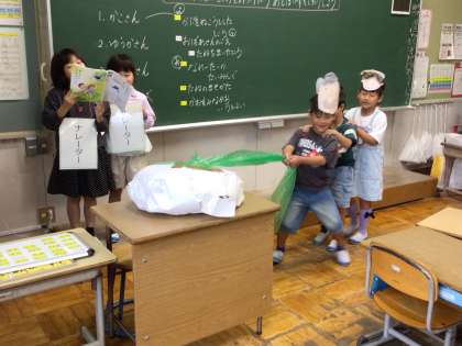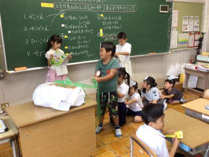 1年生の国語科「大きなかぶ」の学習で、音読発表会を行いました。みんなで登場人物の気持ちを読み取り、その気持ちが表現できるよう演技をしながら音読をしました。また、教科書には書かれていない行間の部分の動きや言葉を工夫しながら考え、真剣に、楽しく音読発表会を行うことができました。