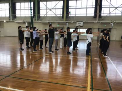 今日は、体育主任の先生を講師として、集団行動の研修を行いました。集団行動の目的や合図の意味などを教えてもらい、一つ一つ動きを丁寧に確認しました。動きをそろえた方が怪我につながらないことや、次の動きがわかるような合図のタイミングについてより深く理解できました。10月に行われる運動会では、この成果を見ていただけるよう、9月からの体育の授業や学校生活の中で、集団の動きを意識して教育活動を行っていきます。