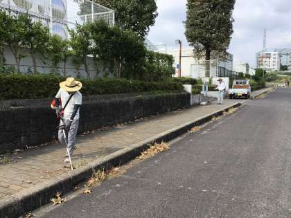 学校の敷地いっぱいに広がった雑草を、校内整備員さんや地域のボランティアの方たちが綺麗にしてくれました。大変暑い中ですが「子どもたちが気持ちよく学校に来られるようにがんばるよ」と言ってくださり、大変ありがたいです。