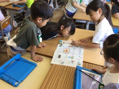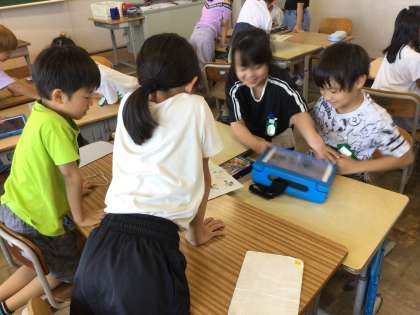 2年生は、班の友達とすごろくをして、夏休みを振り返りました。マスの指示に従い、夏休みの思い出や好きなかき氷の味などを伝え合い、楽しい時間を過ごすことができました。久しぶりに会う友達と色々な話ができ、みんなのほほえみが満開になりました。子どもたちの笑顔から、充実した夏休みを過ごしたことが伝わってきました。