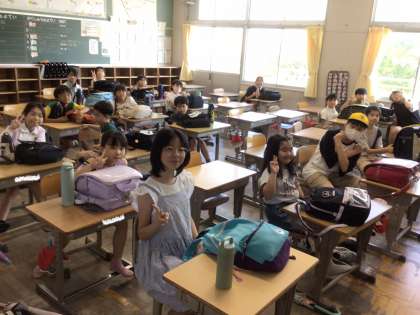 今日は天気予報通り、とても暑い日になりました。そのため、少しでも日陰で過ごせるようにと考えて下校集会は行わず、通学団ごとに教室に集まって下校しました。