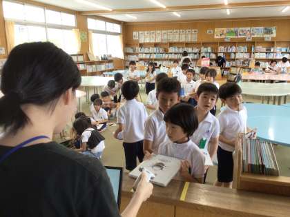 2年生の国語科「みんなで話し合おう」の学習では、「もし、好きなお話の世界に行けたら・・・」をテーマに、友達と話し合う学習をします。そこで、みんなで図書室に行って、行ってみたいお話の世界を選んでいました。みんな、どんな世界でどんなことをしたいのでしょうか。次の授業が楽しみです。ちなみに校長先生は、「ぐりとぐら」の世界に行って、パンケーキの上で昼寝がしたいそうです。