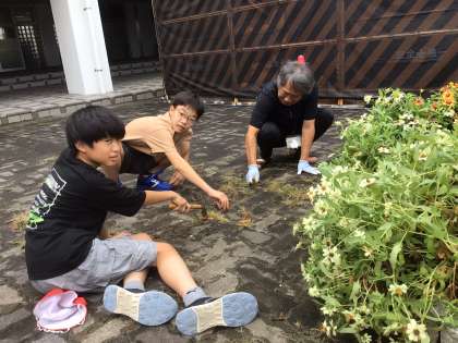 すっかり雨も上がり、掃除の時間には、どの子も一生懸命取り組んでいました。草もずいぶん取りやすくなったようです。力の必要な仕事も笑顔でやってくれました。ずいぶん綺麗になりました。ありがとう!