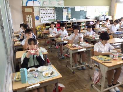 ちゃんと、グーペタピンを意識して、給食を食べていました!さすが5年生ですね。こういう子どもたちが増えると嬉しいです。