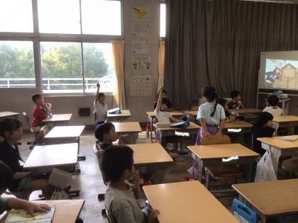 1年生は、「朝の会の対話」の時間に、「通学路にある素敵なもの」をテーマに対話の練習をしていました。先週末にお家の方と一緒に通学路を歩いて写真を撮ってきた子が、写真を見せながら、お気に入りの理由を伝えていました。それを聞いた子は「場所はどこですか?」などと質問しながら、みんなで話題を深めていました。この調子で、どんどん対話力がつけていってくださいね。