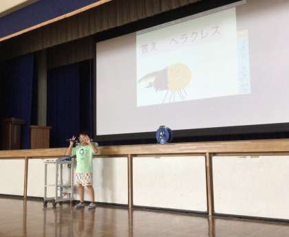 発表者が飼育しているカブトムシの写真やイラストをスクリーンに映し出して紹介してくれて、参加者は昆虫に親しみをもつことができました。