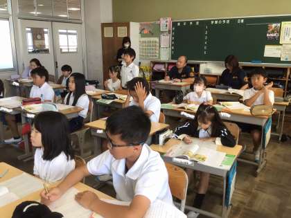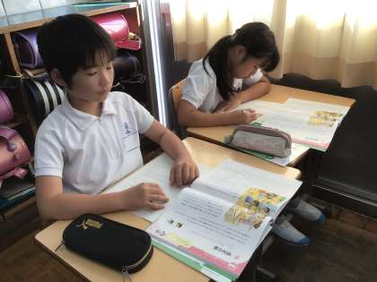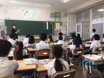 教育実習の先生が4年生の教室で道徳の授業を行っていました。先生も子どもたちも真剣そのもの。「遠足の朝」というお話を通して、「『正しいこと』ってどんなことだろう」をテーマに話し合っていました。
