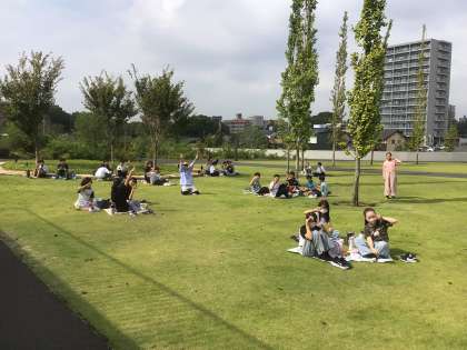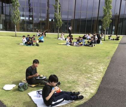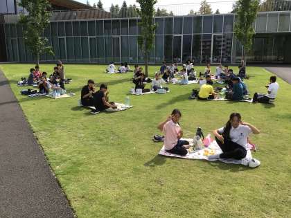 午前中、一生懸命学習した子どもたちは、お腹がぺこぺこ。気持ちの良い芝生の上で、お弁当を美味しくいただきました。