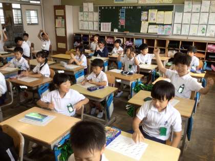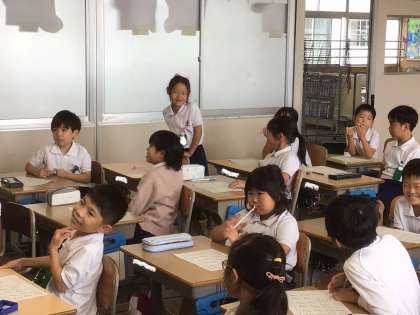 2年生の算数科では、先週からかけ算の学習が始まりました。子どもたちは、かけ算に興味津々。先週学習した5の段の秘密は、「時計と同じなんだよ」と教えてくれました。今日は2の段の秘密を見つけようと、みんなで楽しそうに学習していました。秘密がわかったら、また教えてくださいね。