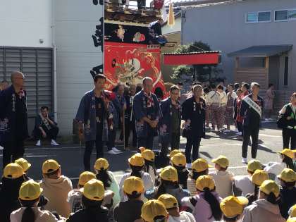 毎年本校では、挙母祭りの前日に、6年生が山車蔵から学校まで山車を曳いてきて、全校で山車やお囃子の鑑賞をする「挙母祭りを学ぶ会」を実施しています。今年も南町の方にご協力いただきました。