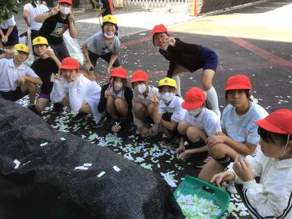 今日の5時間目に、清掃のスペシャリストが登場しました。その名も「say そう 部隊」。学年主任が命名しました。駐車場に落ちている紙吹雪を5年生が見事に綺麗にしてくれたのです。いかに効率よく紙吹雪を回収できるか、みんなで知恵を出し合い、協力して綺麗にしていました。「まだこっちにたくさん落ちているよー」との声が聞こえると、さっと移動してあっという間に綺麗にしていました。さすが、高学年です!