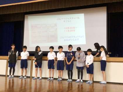 全校集会で、美化委員会から、今日から始まる分別フェスティバルの説明がありました。分別がきちんとできるようになってほしいと、美会委員会の子どもたちが分別クイズや分別すごろくを考えてくれたのです。クイズに答える子どもたちはとても楽しそうでした。楽しみながら正しい分別の仕方を覚えてくださいね。