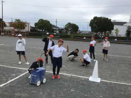 今日の5・6時間目は、6年生が運動会の準備をしてくれました。「運動会を成功させるために、みんなで頑張ろう!」という先生の期待に応えるかのように、子どもたちは、任された仕事を最後まできちんとやったり、お客さんの動きをイメージしながら必要な仕事を見つけたり、一生懸命取り組んでくれました。おかげで、とても早く準備が終わりました。最後に、みんなで明日への気合いを入れてから下校しました。