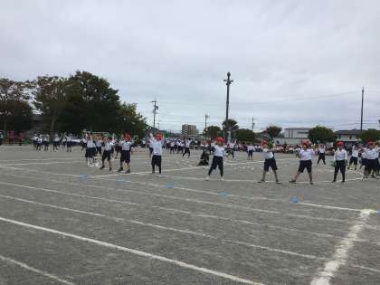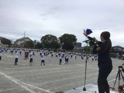 1・2年生の競遊「ハロ!でなかよし チェッコリ玉入れ」が始まりました。毎年、全校児童が楽しみにしている競技です。みんなの声援を受けて、1・2年生の子どもたちは張り切って踊ったり、玉入れをしたりしました。