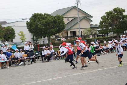 最後の種目は赤白リレーです。ここまで得点にほとんど差がなく、このリレーの勝敗に注目が集まっていました。どの子も素晴らしい走りを見せてくれました。