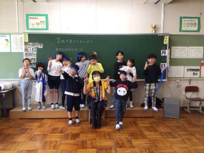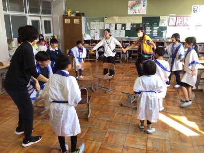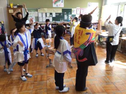 山あす学級では、お祭りをテーマに生活単元学習を進めています。11月に行う「山あす祭り」では、毎年朝日丘音頭を踊っていますが、今年も講師の方に来ていただいて、踊り方を教えてもらいました。初めて踊る子もいましたが、みんなで声をかけ合って練習したので、授業の終わりには輪になってとっても上手に踊れるようになりました。山あす祭り本番まで練習を続けていくそうです。