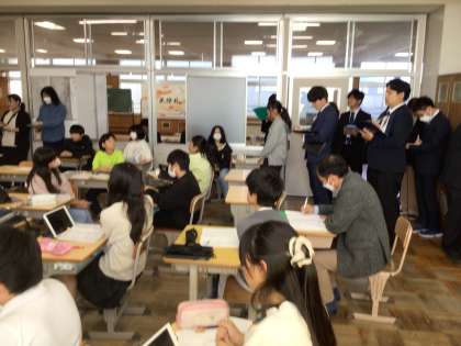 6年生で、研究授業が行われました。住みよい地域にするために「電柱の地中化」を調べた子の発表をきっかけに、「道を広げる」をキーワードにし、曳家や自転車通行帯などの方法について議論が始まりました。それぞれに個別追究をしっかりしてきた子どもたちは、自分で現地に行って調べたことなどを根拠に意見を述べていました。この先も追究を進めていき、自分たちの住む街について考えていきます。