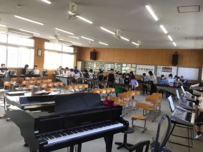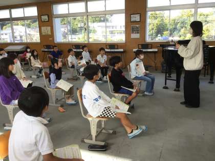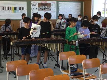 3年生は音楽の授業で、合奏に挑戦中です。鉄琴や木琴担当の子どもたちは、前時に学習したマレットの持ち方をしっかりと覚えていて、正しい持ち方で綺麗な音を出そうと頑張っていました。キーボード担当の子は、5本の指を正しく動かして音を出すことに挑戦していました。みんなで演奏するのは今日が初めてでしたが、最後まで演奏ができていました。これからもっと気持ちを合わせて、素敵な「ゆうかいな木きん」を演奏できるようにしていきます。