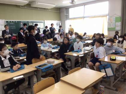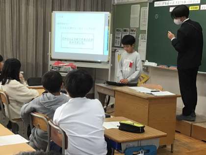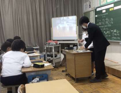 4年生の理科で研究授業が行われました。今日は市内の初任者の先生方の研修も兼ねて行われたため、多くの参観者がいましたが、子どもたちはいつも通り活発に発言していました。