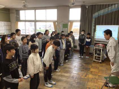 今日の5時間目に、運動場を整備していただく業者の方に4年生の教室に来ていただき、理科の授業で追究してきた「運動場の水たまりをなくす方法」を提案をしました。子どもたちが、今まで自分たちが実験してきた結果を元に「粒が大きい砂で水たまりを埋めてほしい」と提案をすると、業者の方は「みんなの考えがよくわかりました。でも粒が大きい砂だけだと、砂が動いてしまってまた水たまりができてしまいます。水の逃げ場を作る必要もあります。最適な砂を選びますね」とおっしゃっていました。子どもたちは自分たちの考えが実現される日を楽しみにしています。