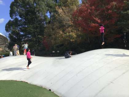 鞍ヶ池公園では、トランポリンで飛び跳ねたり、芝生の上で走ったりして元気に楽しく過ごしました。お弁当も先週買ったおやつも美味しく食べ、また一つ、楽しい思い出が増えました。