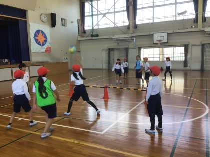 3年生の体育で、プレルボールをしました。プレルボールは、自分のコートにワンバウンドさせてから相手コートにボールを返す競技で、チームの協力が勝敗を左右します。