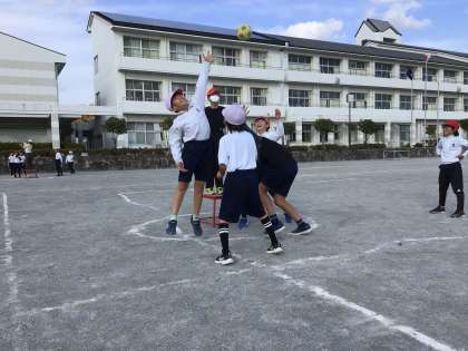 4年生は体育科の学習でセストポートボールに挑戦しています。これは、セストボールとポートボールを合体させたスポーツです。ボールを持っている人は動けないので、ボールを持っていない人の動きが勝敗につながります。子どもたちは、あっという間にルールを覚え、自分たちでスペースを見つけて動いたり、声を出したりしながら、ゲームを楽しみました。これからは、チームで作戦を立てて、協力しながらゲームを楽しみます。
