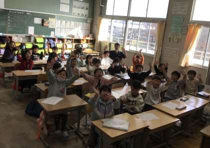 1年生に「明日から6年生は修学旅行出かけます」と担任の先生が話すと、ポカンとした顔の子どもたちが「修学旅行ってなあに?」と質問していました。6年生みんなで京都と奈良に出かけること、2・3・4日の登校時に6年生がいないことなどを説明すると、「6年生がいないのは寂しい! ぼく泣いちゃう」などと可愛らしい言葉が返ってきました。また、先生が「6年生が無事に行けるように祈ってあげてね」と言うと「うん! いってらっしゃーい!」とみんなで大合唱をしていました。