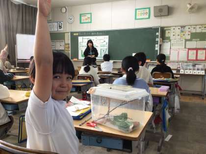 授業の終わりに先生から「夏と比べてどうかな?」「なぜ見つけた動物の数が減ったのかな?」と質問されると、子どもたちはそれぞれ考え込んでいました。その答えは、次回、みんなで考えるそうです。