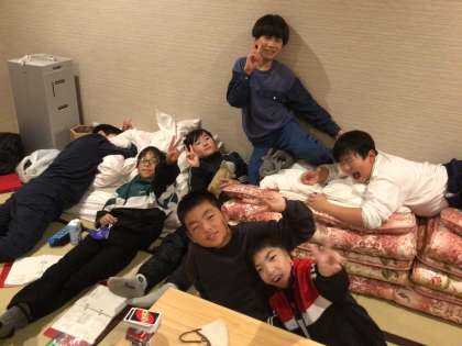 夕食の後は、順番にお風呂に入ったり、明日の準備をしたり、少しゆっくりと過ごしました。「次は何をするの?」と子どもたちに尋ねると「しおりを読んでください」と注意をされました。子どもたちはきちんとしおりを読んで、時計を見ながら行動をしているそうです。さすがです!