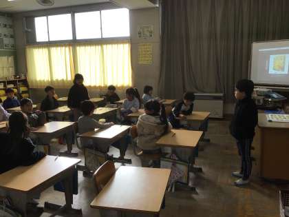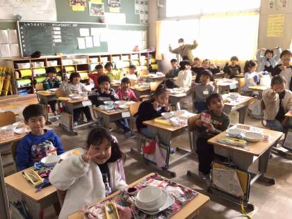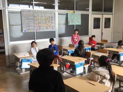 1年生は、「サンタさんにお願いしたもの」をテーマに学級対話をしていました。「ポケモンのゲームをお願いするよ」と話す子や「ぬいぐるみが欲しいな」「私はアクアビーズがいいな」などと、それぞれ欲しいものを言い合い、教室はとても盛り上がっていきました。給食の時間も、ガトーショコラを食べながら、クリスマスの話で盛り上がりました。