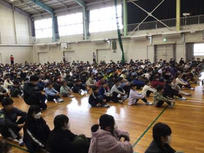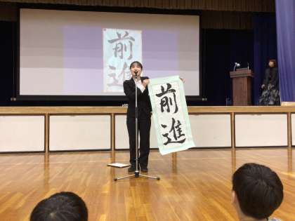 1時間目はニューイヤー集会を行いました。校長先生からは、牛と午と馬の漢字を取り上げながら「午年は運気が上がる年と言われています。みんなでいい年にしましょうね」というお話がありました。また書写担当の先生からは、「書き初めは、1年の目標を書くことで、新たな1年を始める伝統行事です」というお話とともに、先生の書き初めを見せてもらいました。素晴らしい書を見せてもらい、子どもたちも書き初め大会への意欲が高まったようです。